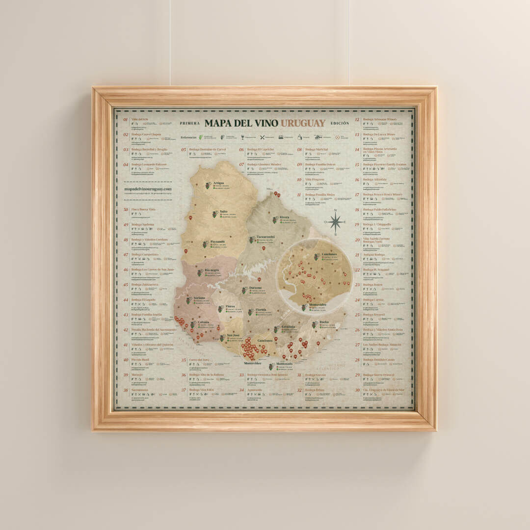 Disfrutá tener el Mapa del Vino de Uruguay impreso en la más alta calidad y con la última tecnología, también con la posibilidad de enmarcarlo con excelentes terminaciones y materiales.